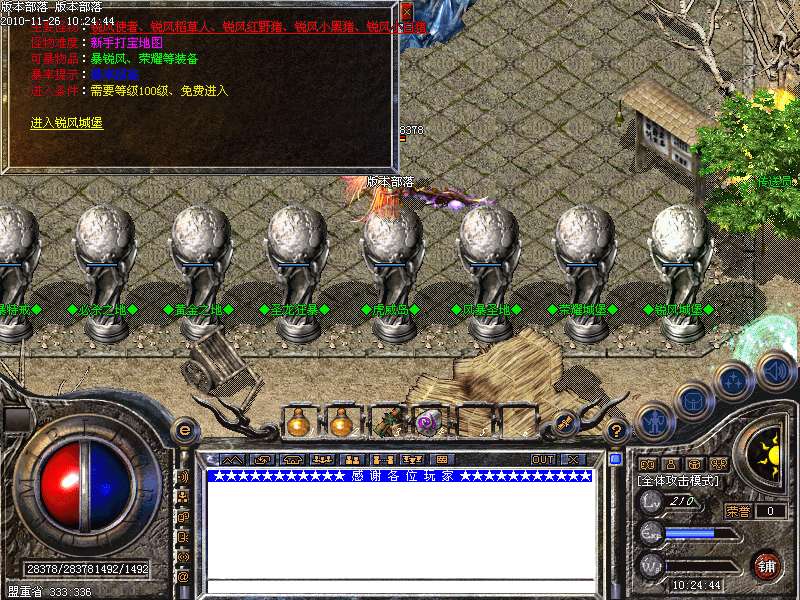风雷令1. 增加风雷令,可以将在线的一个行会的集合在一起 ,2. 给玩家一个很激情的场所,不过有地图限制的哦