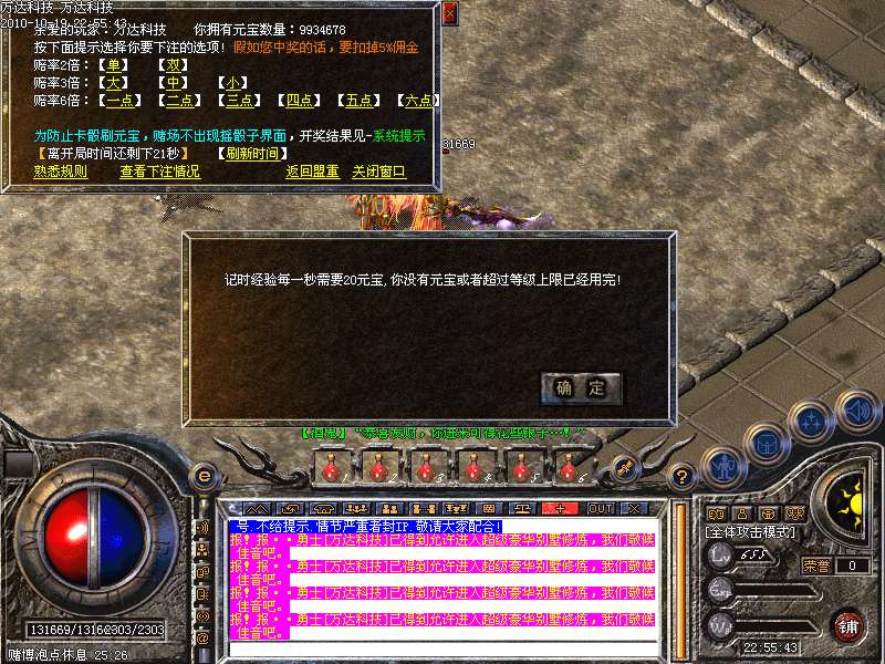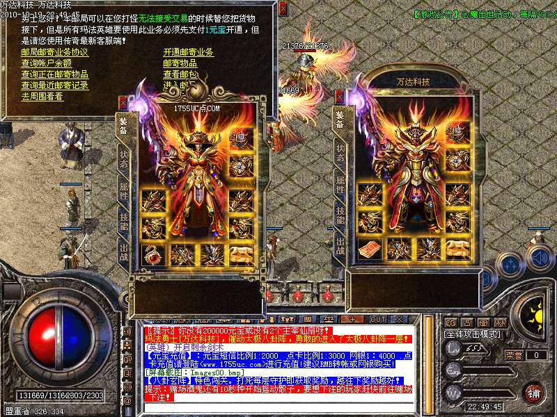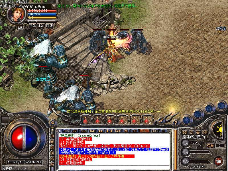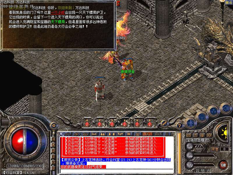 【特色功能】:【上古龙神】行会PK室(23.24)上古龙神90分钟会出现。爆装备元宝。。