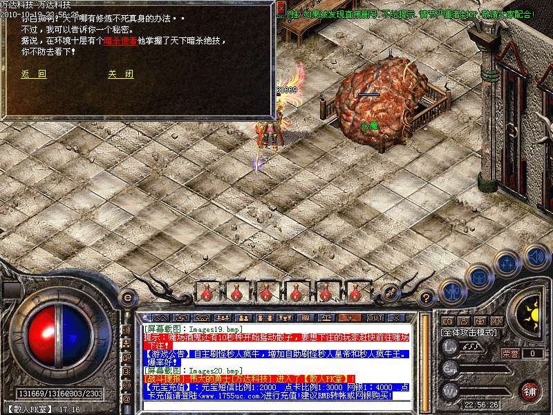5.自主刷怪秒人疯牛,增加自助刷怪秒人皇帝和秒人疯牛王。爆率好!