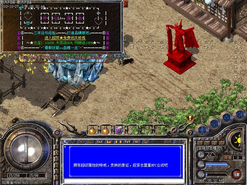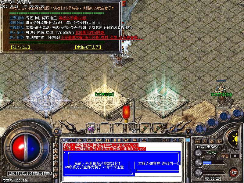 天下第一:每天下午3点,土城左上角进入,最后一个离开获得"天下第一剑"和500万元宝