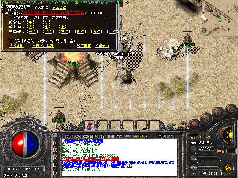 骨灰玩家请注意.三天后集体拿沙.以拿沙时间结束为准.凡是达到85级玩家可在沙后红字提示.赠送金牛级装备一套.