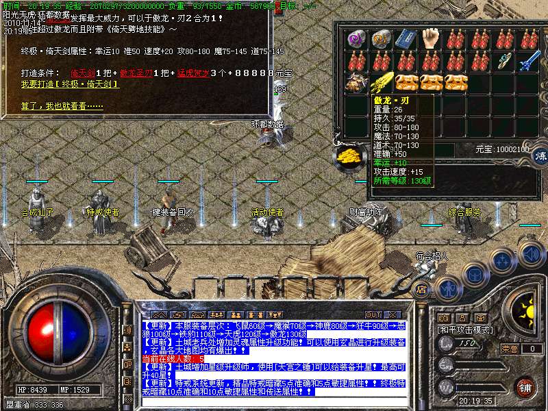 【更新】土城增加星级升级师,使用[天宫之锤]可以给装备升星!最高可升40星!