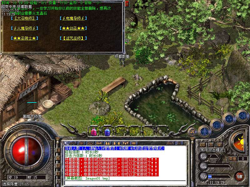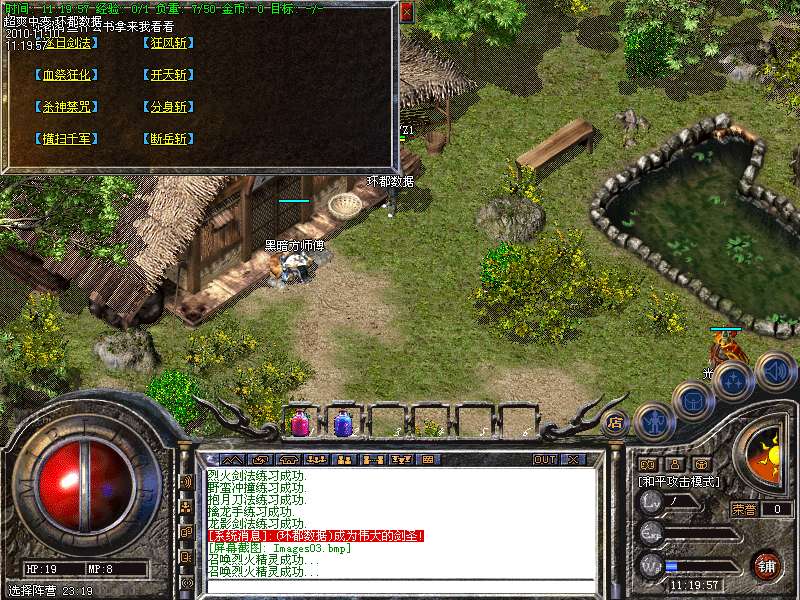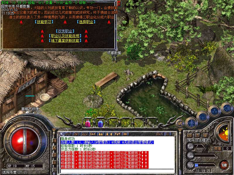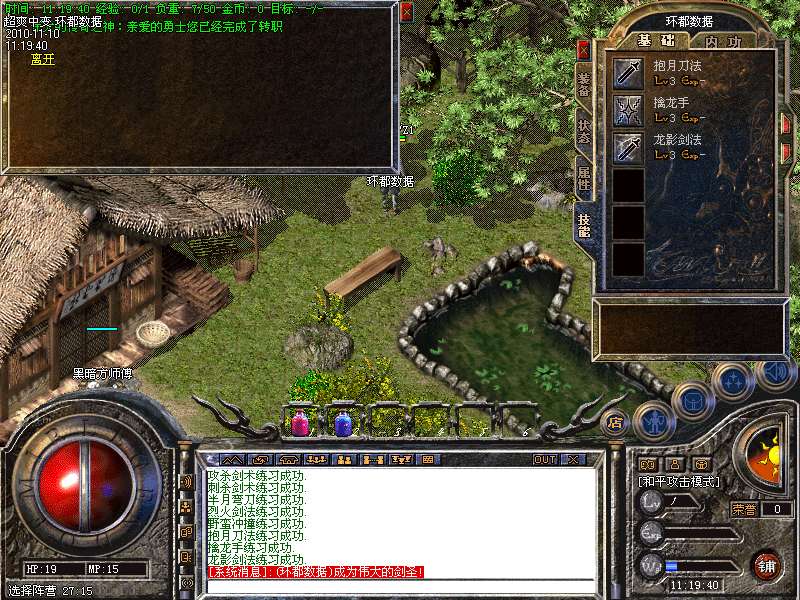 潜行术: 超级隐身技能,使用后一定时间内,怪物人物无法看到,且可以走动和PK