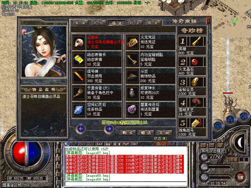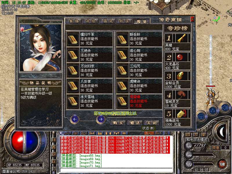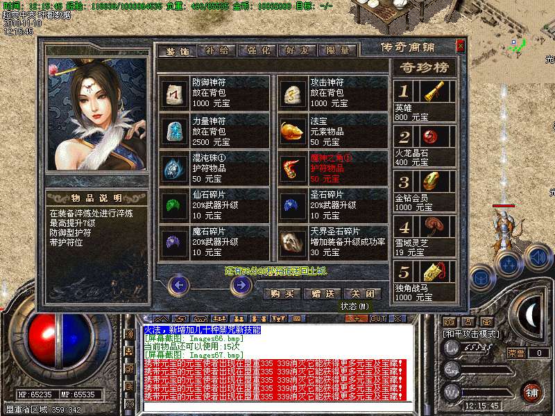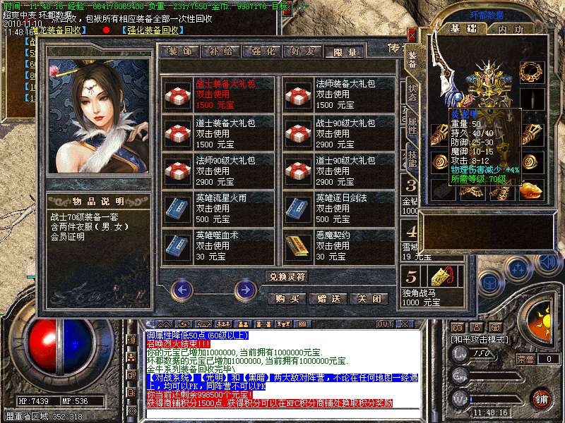【终极武器】本服所有大小BOSS都会爆出终极武器的材料,系统10元宝回收,玩家可以2合1的模式升级9级为终级