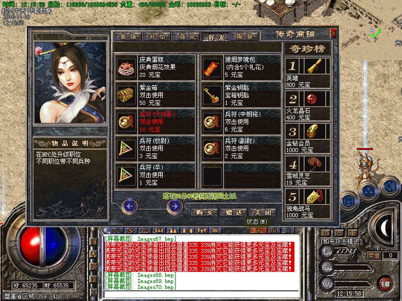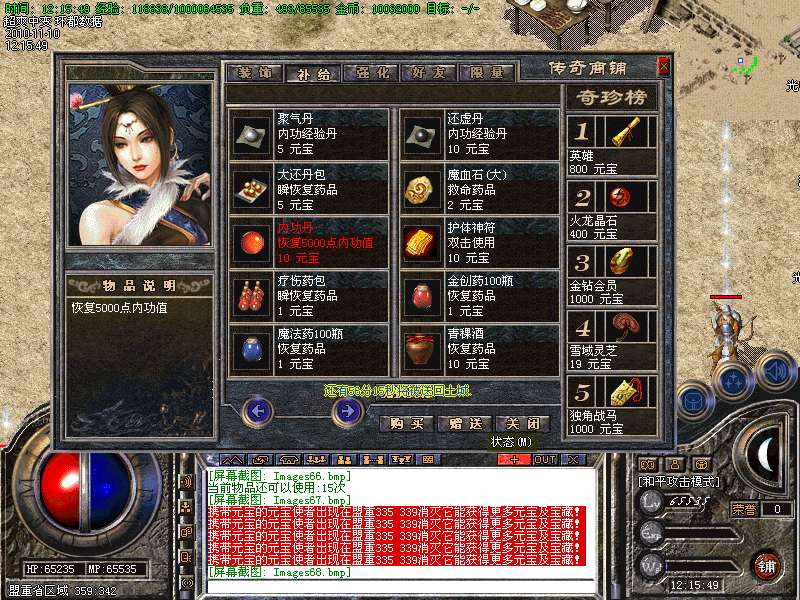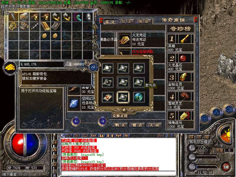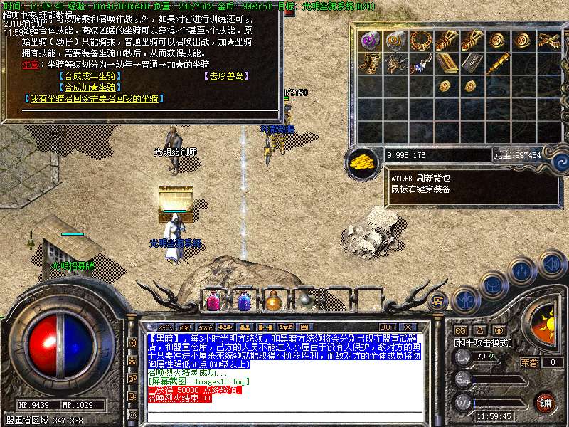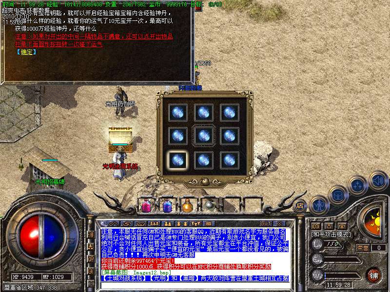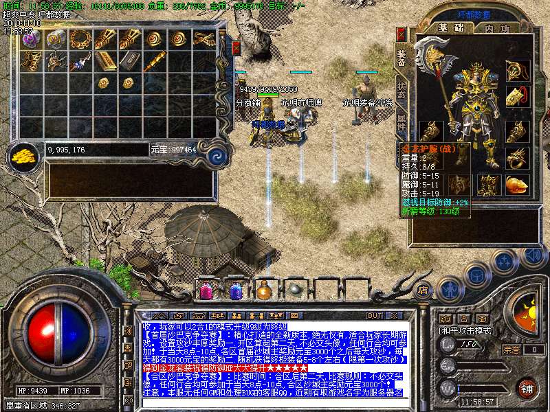 【元宝获得】打小怪红猪黑猪都可能爆出元宝,另外魔龙以上的装备都可以通过回收获得元宝或者经验