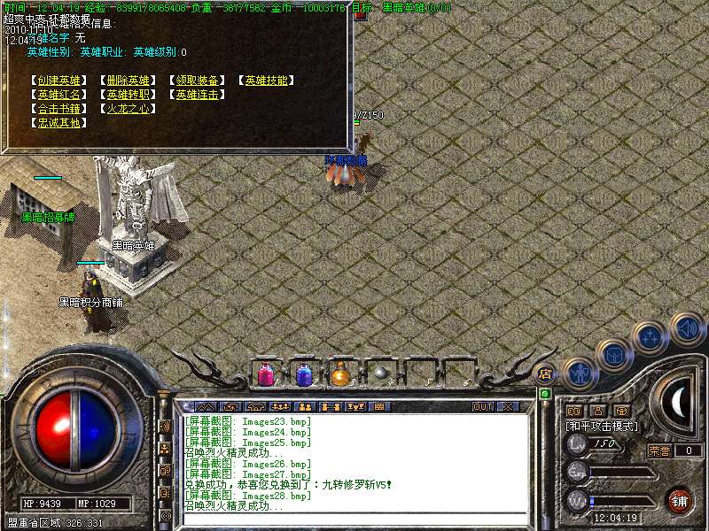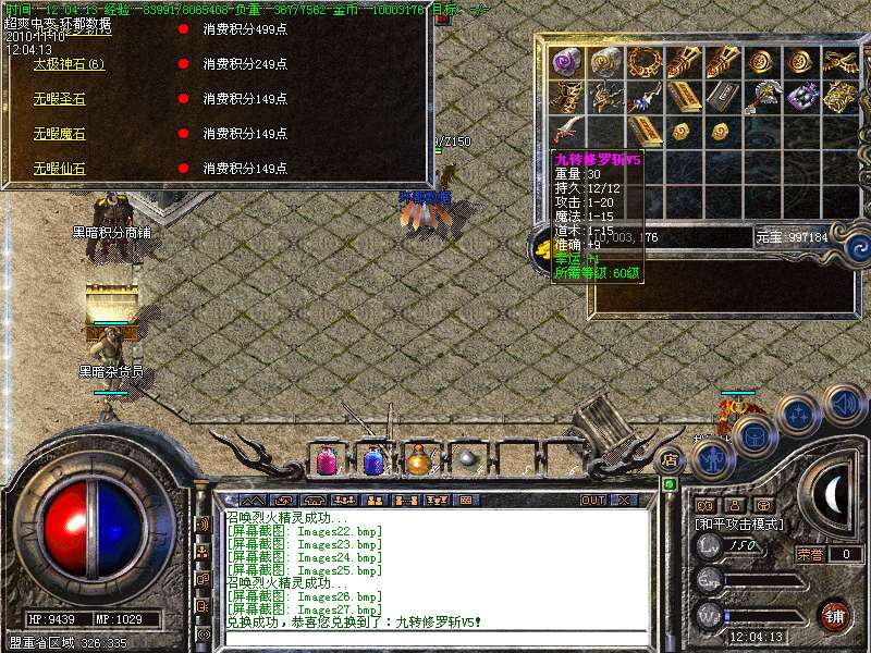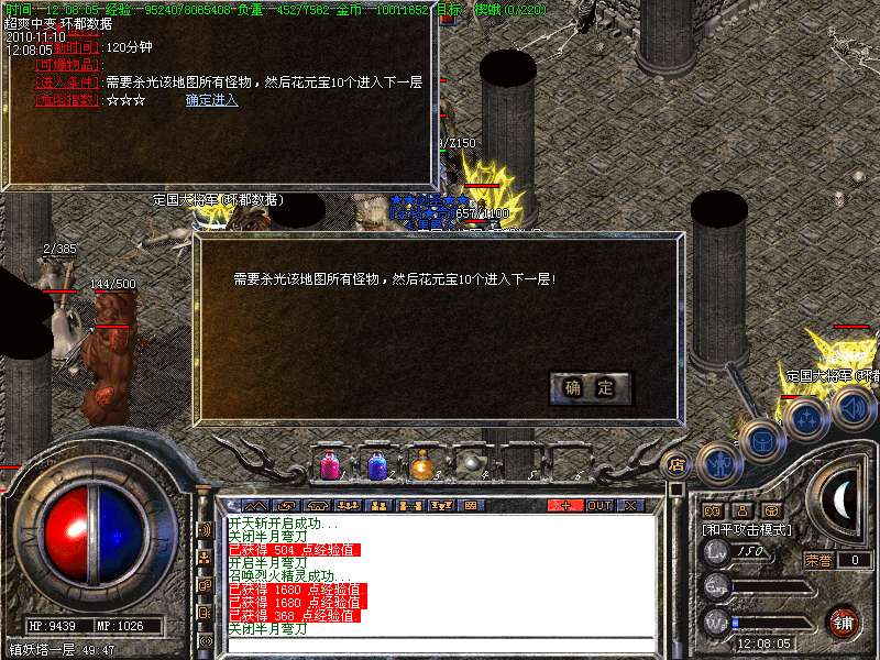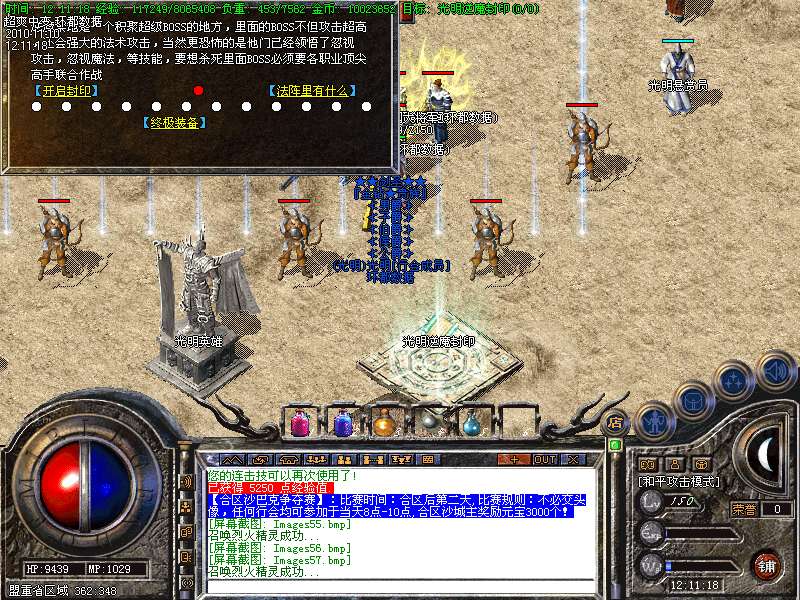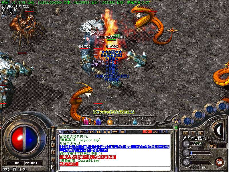 召唤魔王: 可以召唤魔王,不同的道术召唤不同攻击力的魔王(冰咆哮)