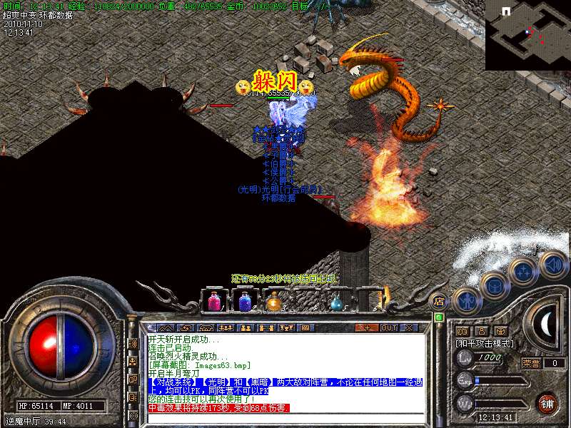 【对战系统】【光明】和【黑暗】两大敌对阵营,不论在任何地图一经遇上,均可以PK,同阵营不可以PK