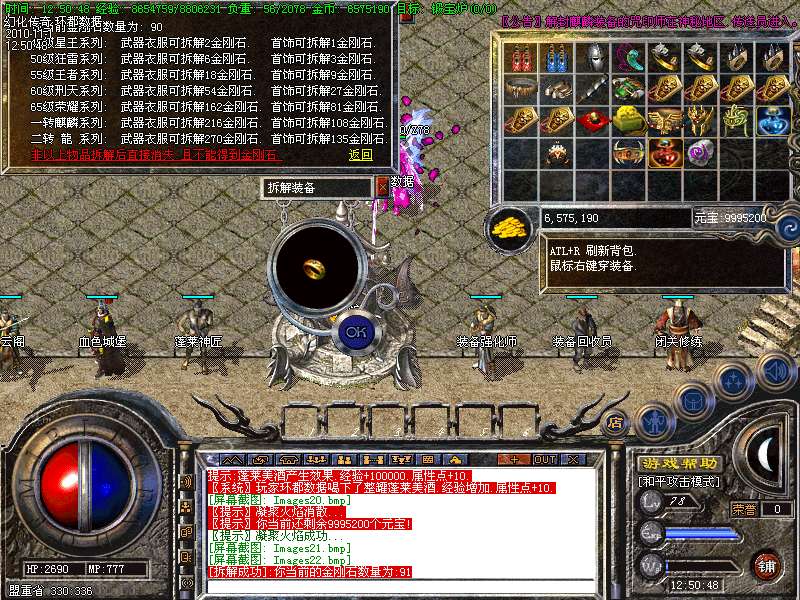 [245]45级以上的装备都可以拿到蓬莱神匠处拆解成金刚石.金刚石可以打造装备.也可以换成元宝.