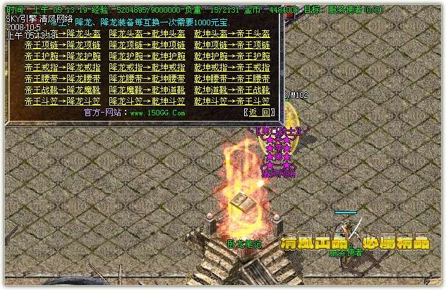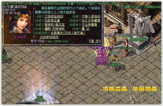 8.屠杀日本天皇:服务器每天23点30分会打开此项活动地图,全区玩家一起屠杀日本天皇,不但可以获得超级极品装备,还可触发盟重省下元宝雨哦.