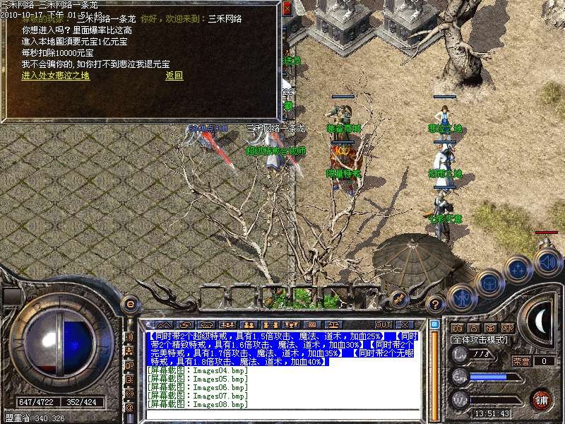 〖版本介绍三〗:新增【顶级狂爆城】【地下王国】【龙帝之墓】【完美之城】【无暇之地】【处 男悲泣之地】【处女泪雨之地】【天意之地】此新增地图绝对可爆全服所有装备 装备,包括特殊戒指和物品,此新增地图全部分为两层,第二层的爆率可比第一层 高的多哦!