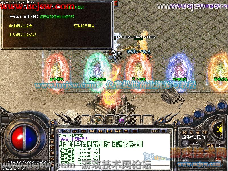 3.特色主宰领域系统:玩家到100级可以到土申请玛法主宰者,可获得独特封号、七彩名字、每天奖励、个人领域地图!