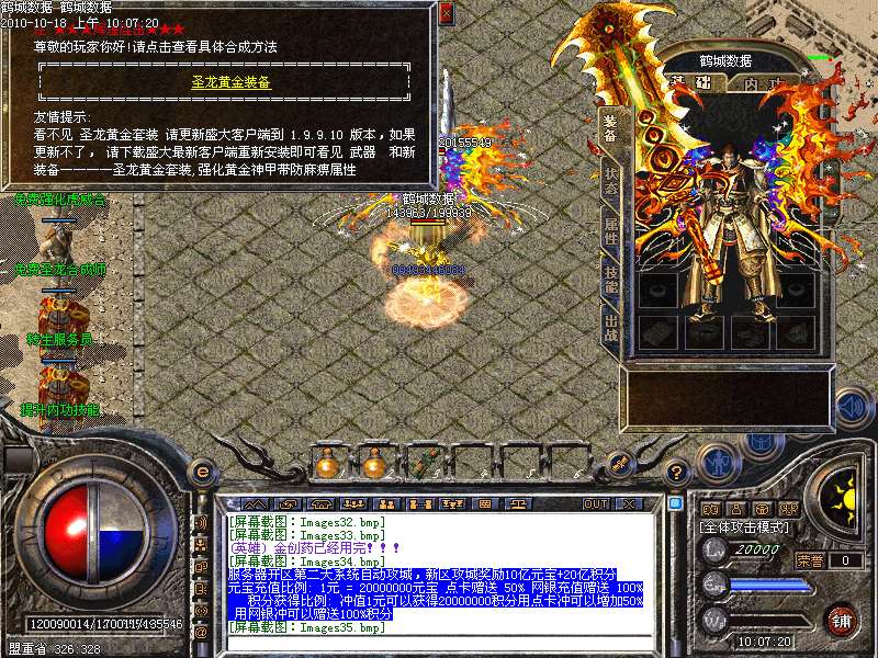 元宝充值比例: 1元 = 20000000元宝 点卡赠送 50% 网银充值赠送 100% 积分获得比例: 冲值1元可以获得20000000积分用点卡冲可以增加50%用网银冲可以赠送100%积分