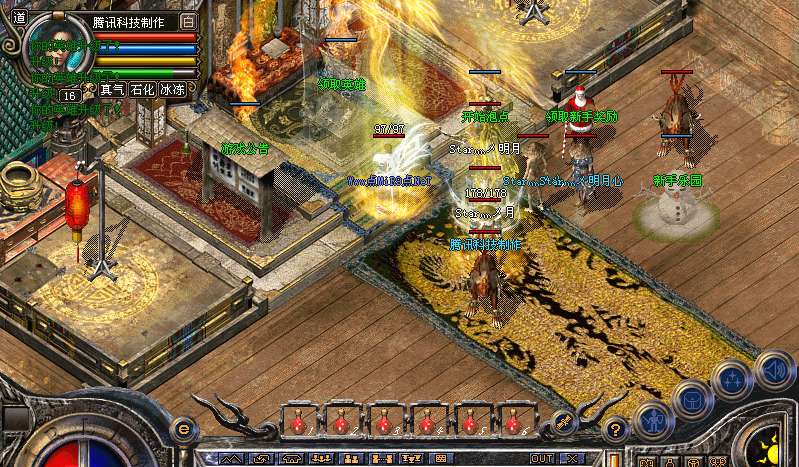 【特色功能】:【天降横财】每隔90分钟,会自动掉落大量元宝和金锭在行会PK室。