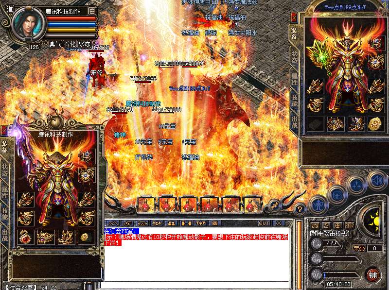 【特色功能】:【上古龙神】行会PK室(23.24)上古龙神90分钟会出现。爆装备元宝。。