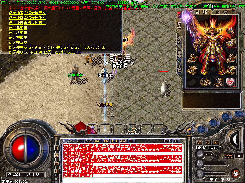 【装备合成】全服的所有装备都可以合成,请玩家注意,包括我们终极装虎威套也可合成。