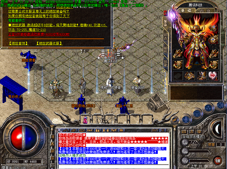 【终极爆率】只要你有足够的实力,终极装备绝对不是梦想!服务器的爆率为满足散人的需要,经过技术人员精心修改,大大的提高了终极BOSS的爆率。