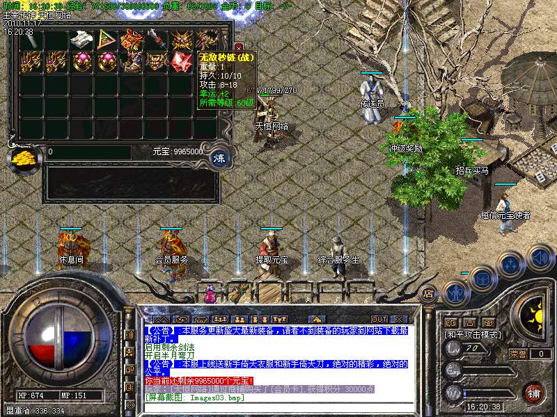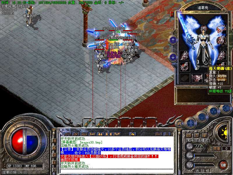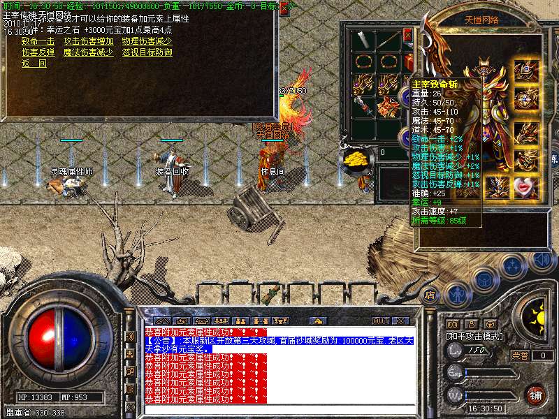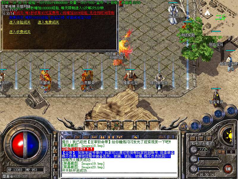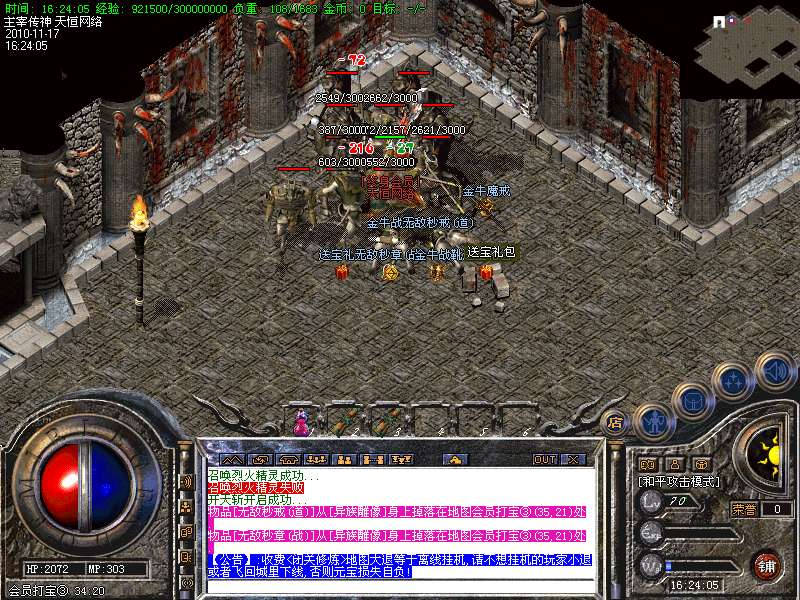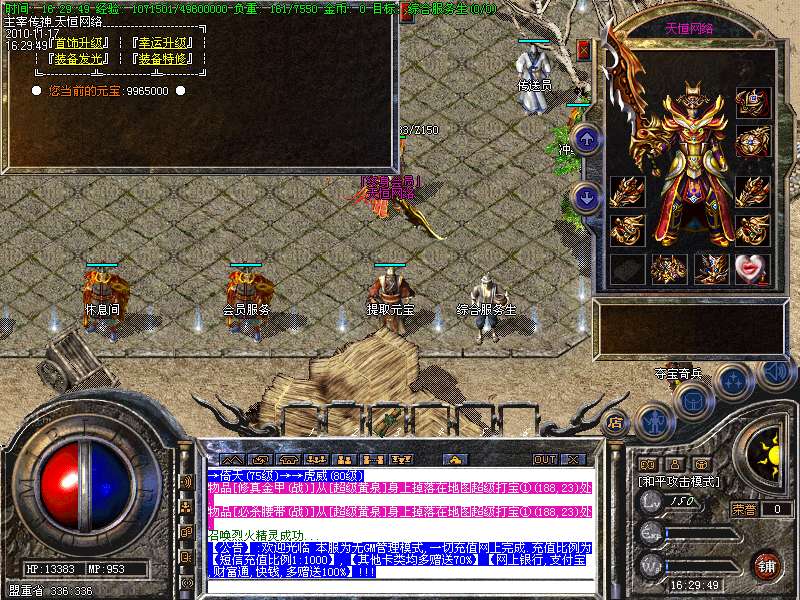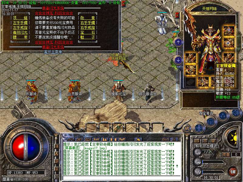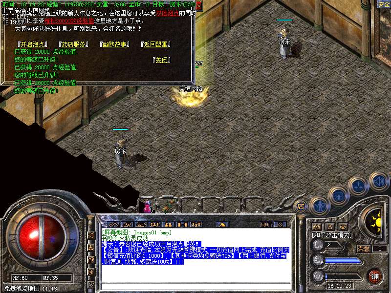 新人上线送幸运+9武器,无须打怪,直接进入泡点休息间,瞬间65级,避免打出装备带不上的尴尬