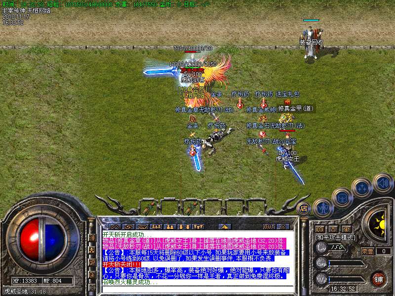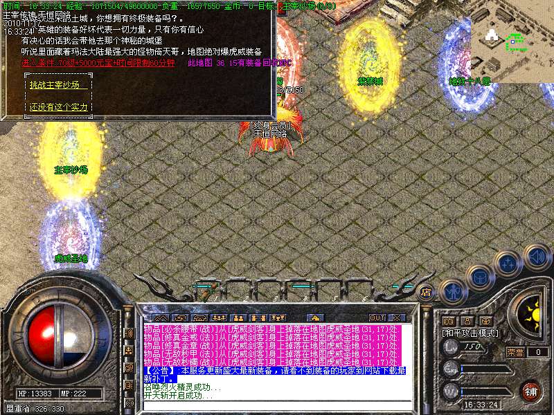 新加入虎威圣地和主宰沙场,小怪也可以轻松爆倚天、幸运之石,BOSS爆所有装备非常之高。