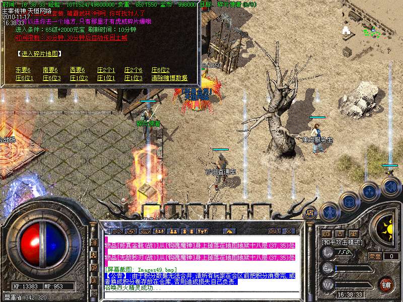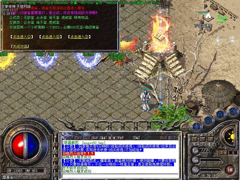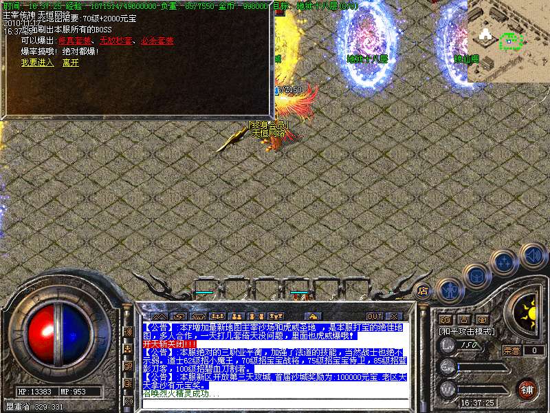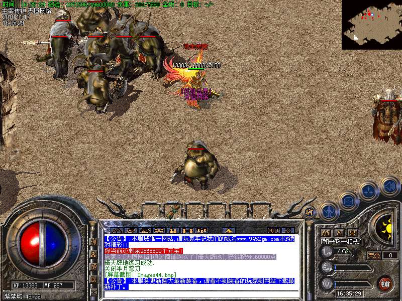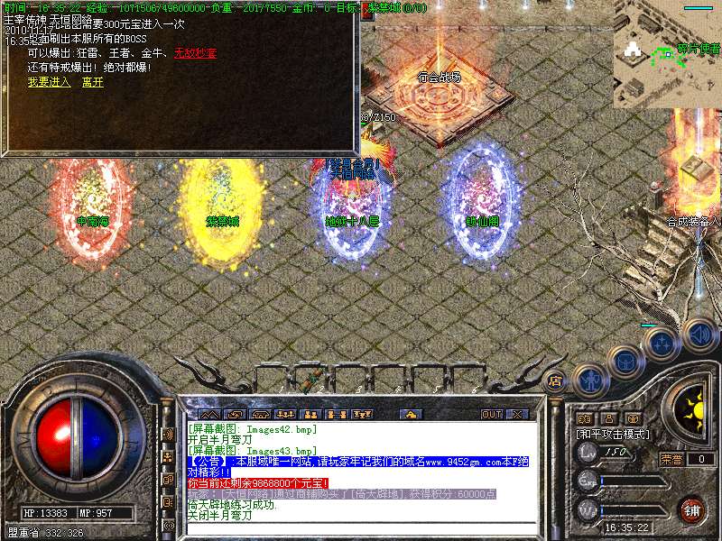 60级后可以去激情打宝,每秒4W经验,边打宝边泡级,可爆修真、无敌、必杀,BOSS出大量元宝。