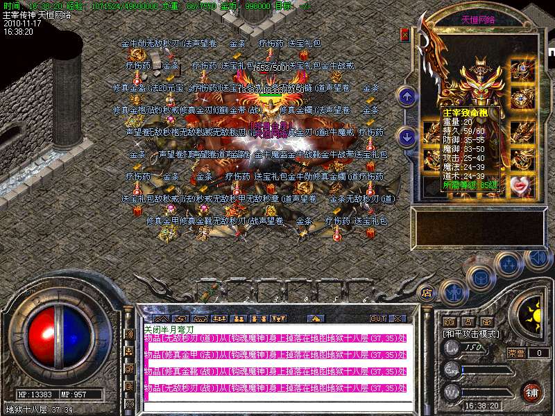 地狱18 中南海 紫荆城 锁仙阁 小怪爆:修真、无敌、必杀(爆率高) 。BOSS爆:必杀、倚天、虎威、幸运石(爆率高)。