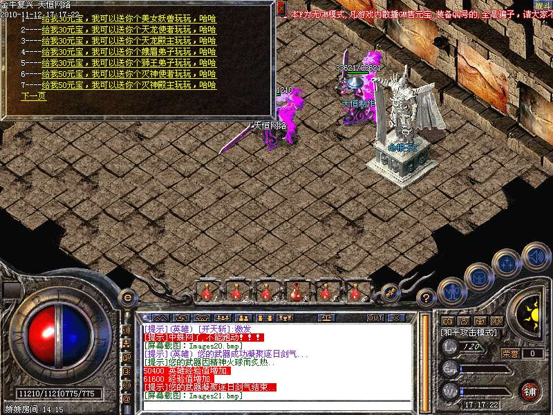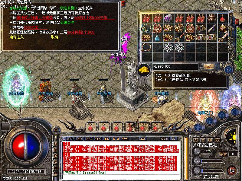 4.神话新加十转轮回系统,美丽的七彩封号增添更多的游戏乐趣!装备调整师(胖子老板)让您的装备得到想要的升级!综合服务师功能强大,服务多多!