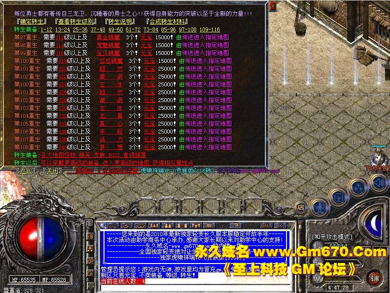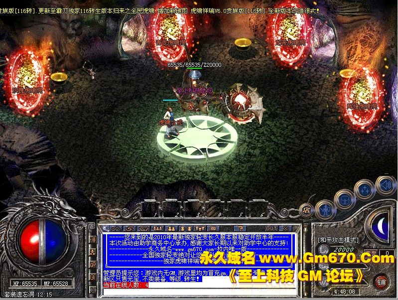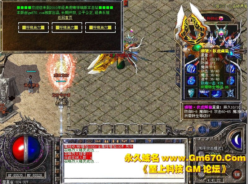 虎啸祥瑞V6.0贵族版[116转].更新至霸刀独家116转生版本.增加新地图.帝王陵墓.请到土城酒馆进入.BOSS掉落帝王之盾可在酒馆强化详情请查看酒馆!