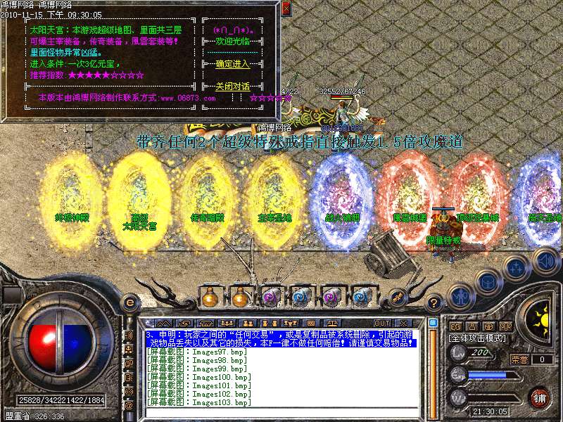版本名称:鸿博网络2012风云独尊最新制作上市连击|传奇暗殿|太阳天宫|天蓬元帅|主宰圣地[3K引擎]
