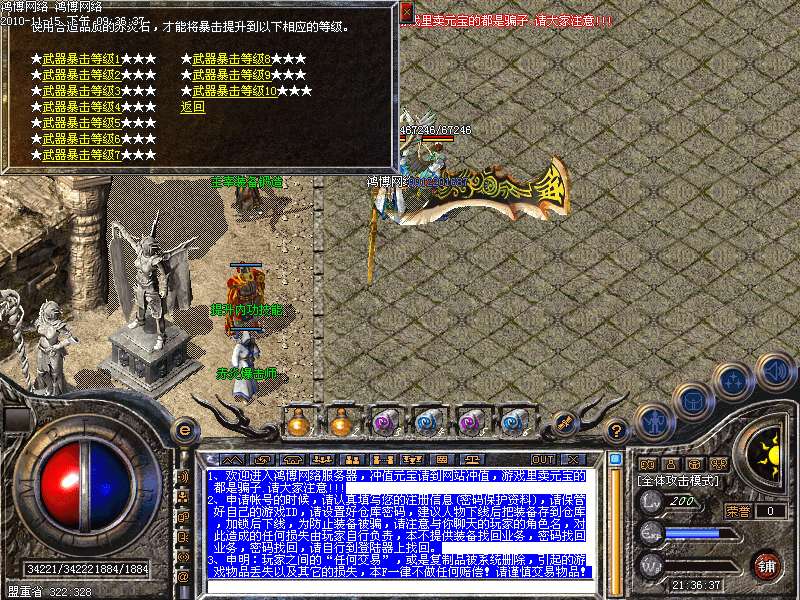 本服为无GM管理模式,冲值元宝请到网站冲值!!!绝对好玩不变态,2011年风云连击版!!!
