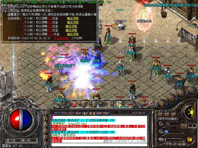 29. ①.天下第一:每职业等级第一名随时在比齐皇宫申请,可获得1.2倍攻魔道!②.行会争霸:每天下午18点,土城左上角点功城公告牌进入,获胜行会"奖励"元宝!③新区2天后功沙,以后每日功沙:新区功沙后跨服合区保证激情和人气!