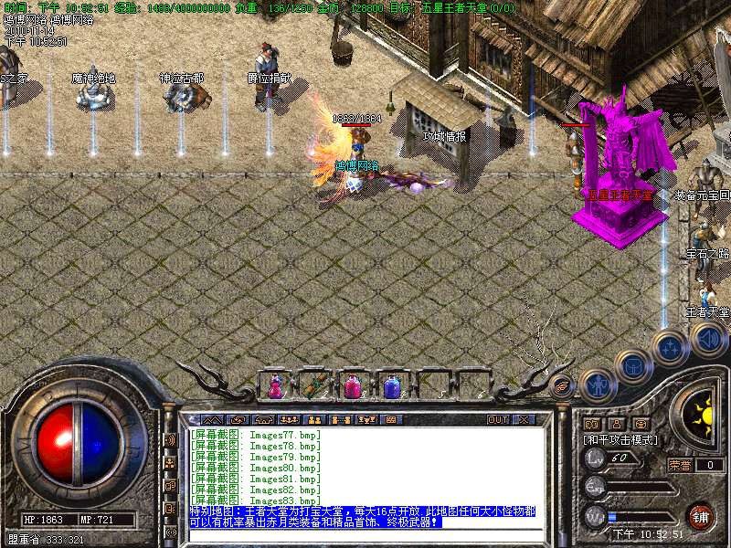 特别地图:王者天堂为打宝天堂,每天16点开放.此地图任何大小怪物都可以有机率暴出赤月类装备和精品首饰、终极武器!