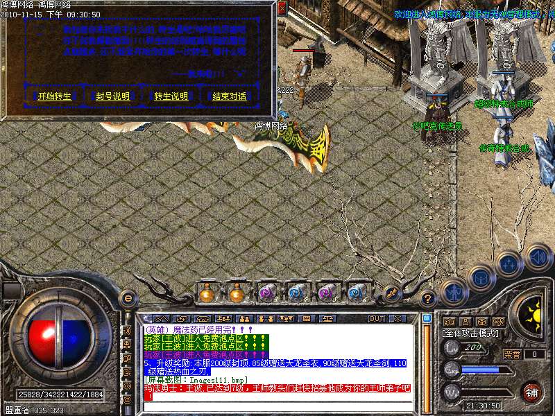 欢迎进入<$SERVERNAME>,本服为无GM管理模式,冲值元宝请到网站冲值!!!绝对好玩不变态,2011年风云连击版!!!