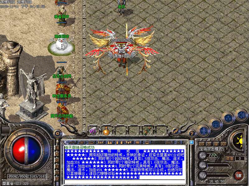 4.同时带2个完美特戒,具有1.8倍攻击、魔法、道术,加血45% ★★★★★★