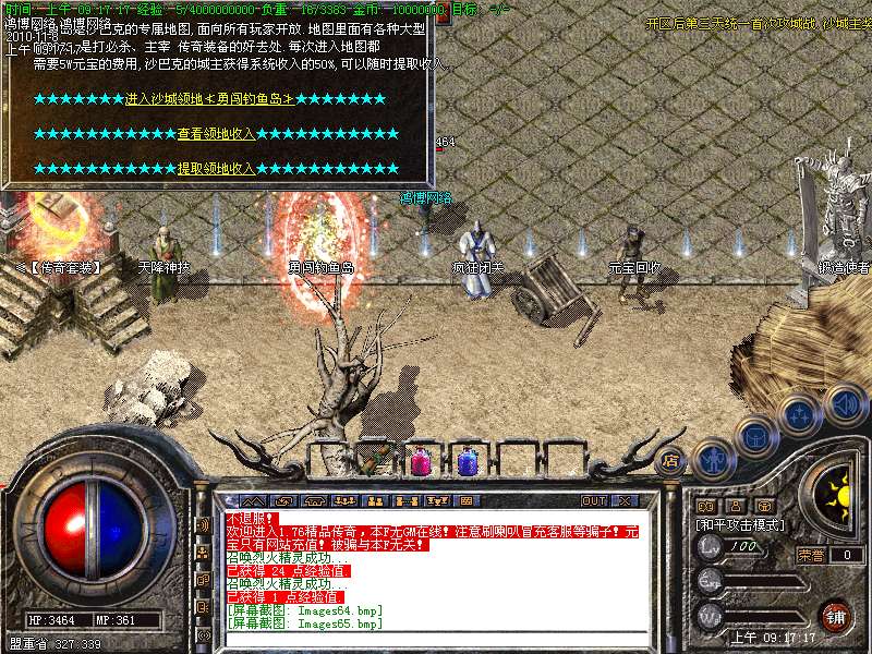 【攻城奖励】新区第一任沙城主获得500万元宝!!攻下城堡之后在土城安全区右上角找攻沙奖励NPC领取。只可以领取一次,切记是在10点以后,15分钟内领取奖励。