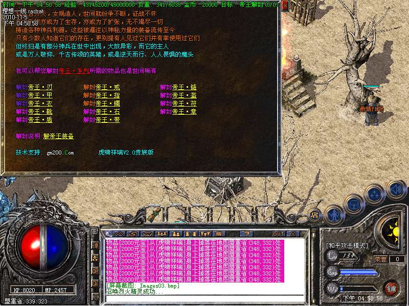 〖提示〗新版虎啸祥瑞V2.0贵族版.提升所有装备爆率.降低攻击速度防止玩家挂BT加速.请玩家不要恶意挂BT加速.保持游戏良好环境