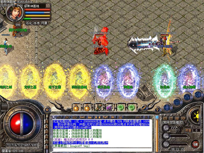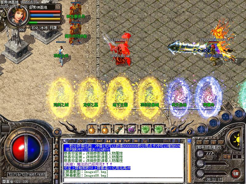 新增【顶级狂爆城】【地下王国】【龙帝之墓】【完美之城】【无暇之地】【处男悲泣之地】【处女泪雨之地】【天意之地】此新增地图绝对可爆全服所有装备装备,包括特殊戒指和物品,此新增地图全部分为两层,第二层的爆率可比第一层高的多哦