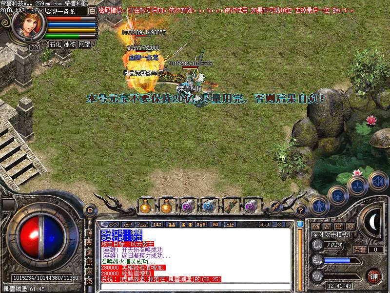 当前版本名称:荣誉科技-2011年独尊风云再起正在开区版-终极神殿-太阳天宫-传奇暗殿-3KM2