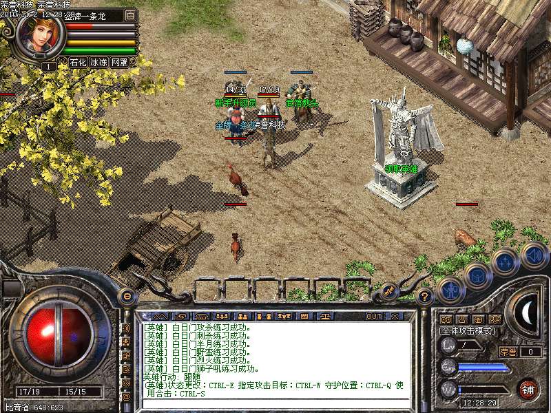 第一步、进入新区后在出生地找领取英雄雕像领取英雄领取对应的合击书和火龙之心,然后点新手升级员进入新手练级场轻松