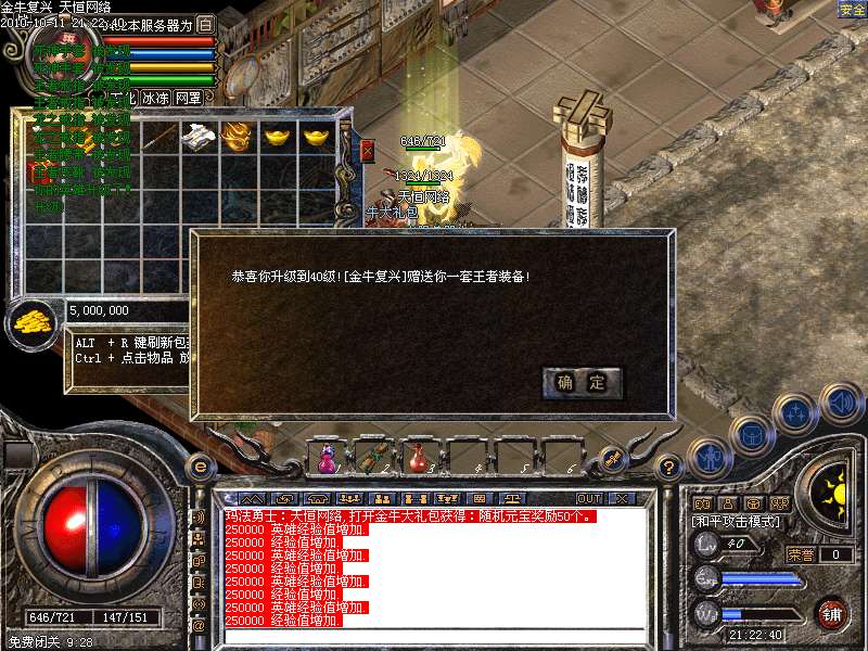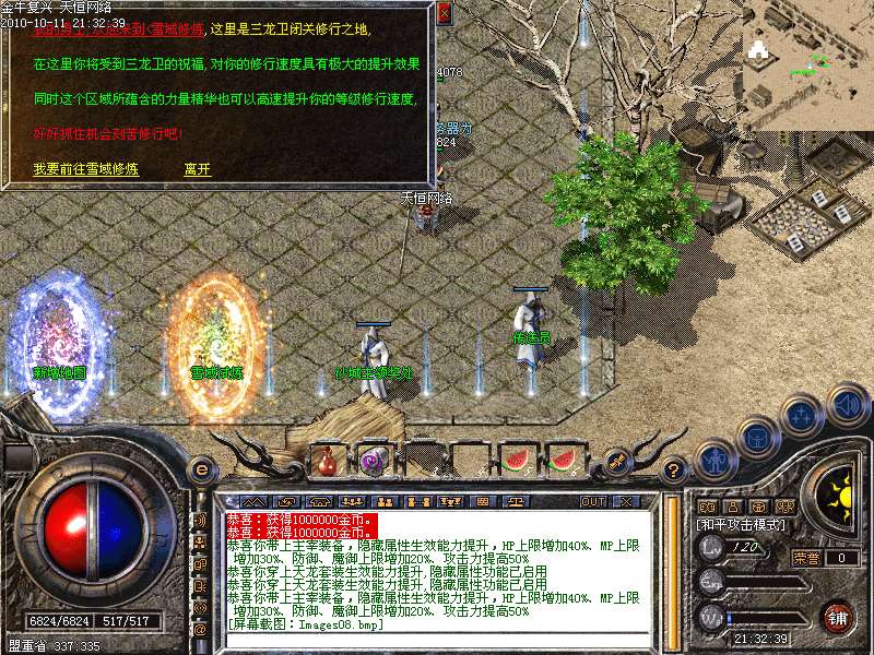 3.快升级-----免费闭观每秒50万经验,激情修炼每秒100万经验免费让你挂到顶级。