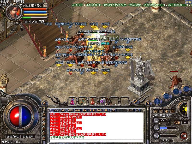 2.金牛系列→为初级装备,所有地图所有怪物都爆,元宝回收150元宝/个。