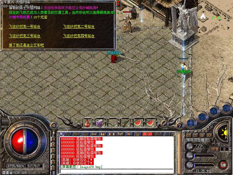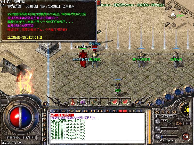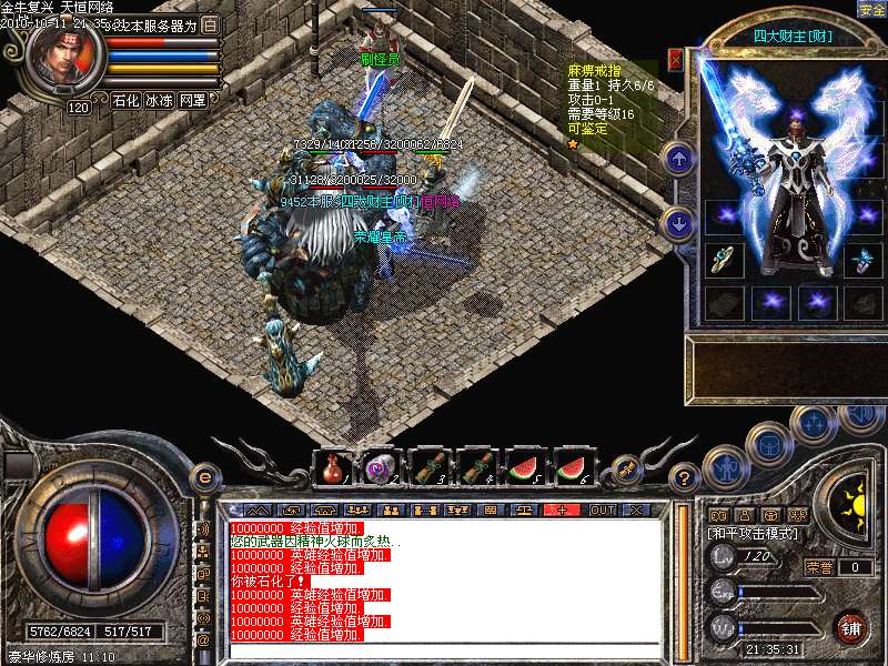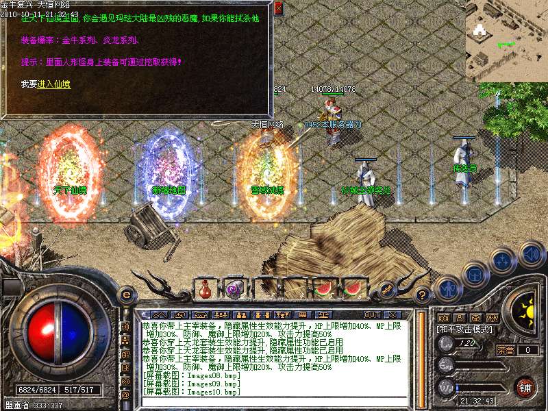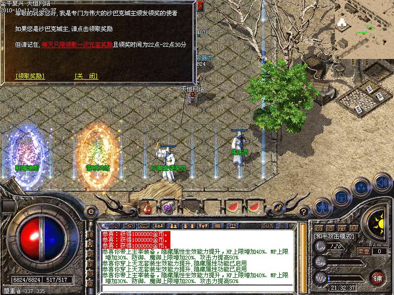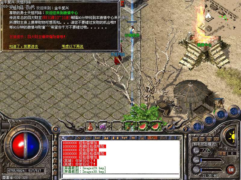 4.盟重→激情中心→90分钟刷4只BOSS四大财主→可爆到终极神物★荣耀勋章★和大量元宝。