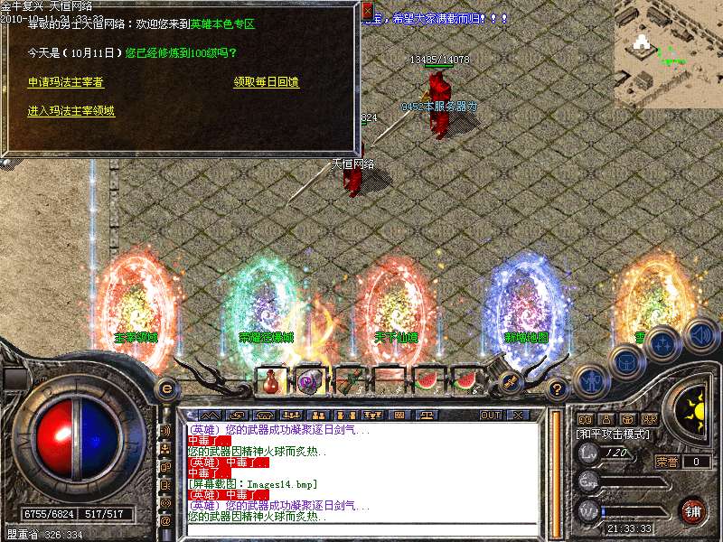 3.特色主宰领域系统:玩家到100级可以到土申请玛法主宰者,可获得独特封号、七彩名字、每天奖励、个人领域地图!