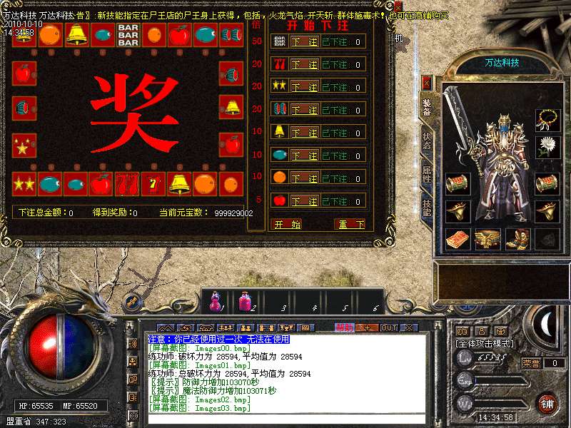 <253,0>游戏爆率已大幅度提高,小BOSS都将会爆出战神装备。包括开天,强化!大BOSS更有几率爆出致命石,伤害石。元素可在封魔皇宫自行添加!