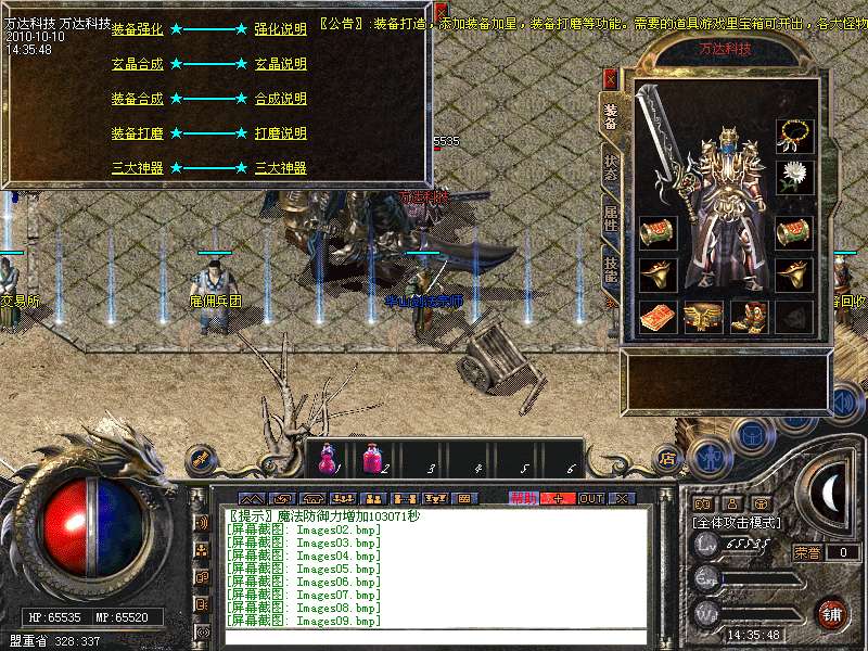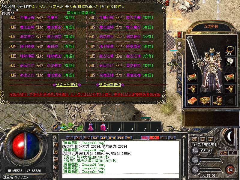 [251]:游戏爆率已大幅度提高,小BOSS都将会爆出战神装备。包括开天,强化!大BOSS更有几率爆出致命石,伤害石。元素可在封魔皇宫自行添加!
