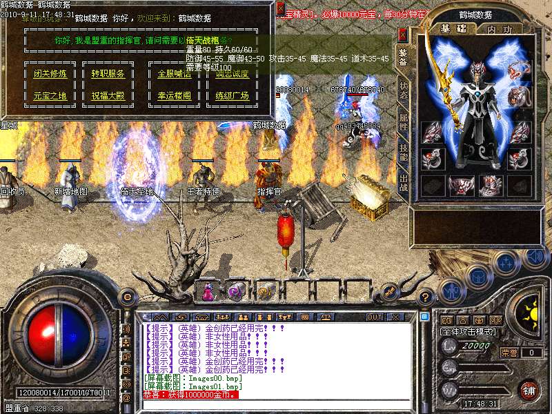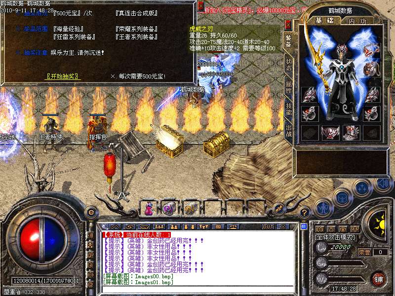 〓攻城提示〓:服务器定于开区后的第2天晚上20点举行全体沙巴克争夺战,奖励物品为:800万元宝!欢迎进入<$SERVERNAME>,本服务器公司运营,长久公平,希望广大玩家多提宝贵意见,预祝大家游戏愉快!