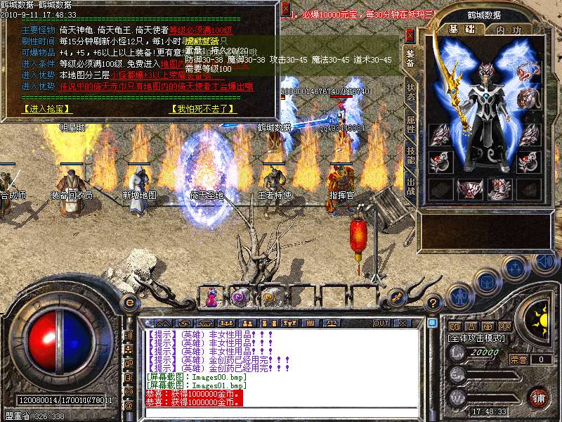 本服最新增加[倚天圣地]和[明星城]怪物刷新速度快,是快速打宝的最好去处!!!