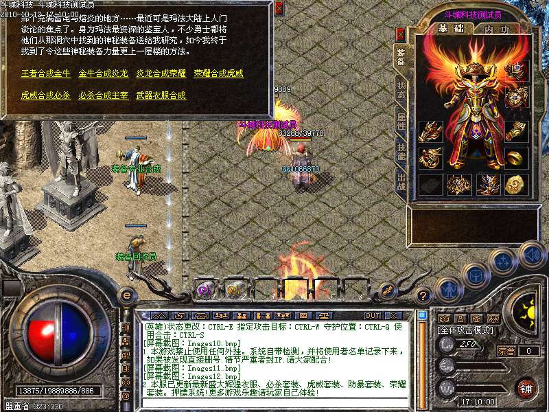 [特色]:升级速度 怪物爆率 装备属性 PK职业平衡性做了重大调整.调整了3个职业的平衡性