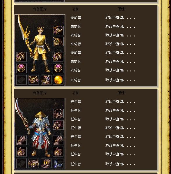 【更新】本服装备层次:飞鼠60级→魔猴70级→神鹿80级→狂牛90级→恶狼100级→铁豹110级→天虎120级→傲龙130级