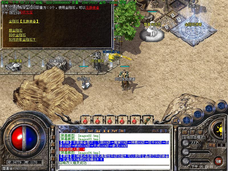 【注意】本服推出金刚石系统,每冲值1元人民币元宝将获得10个金刚石,金刚石可在土城金刚石使者处兑换装备哦!!