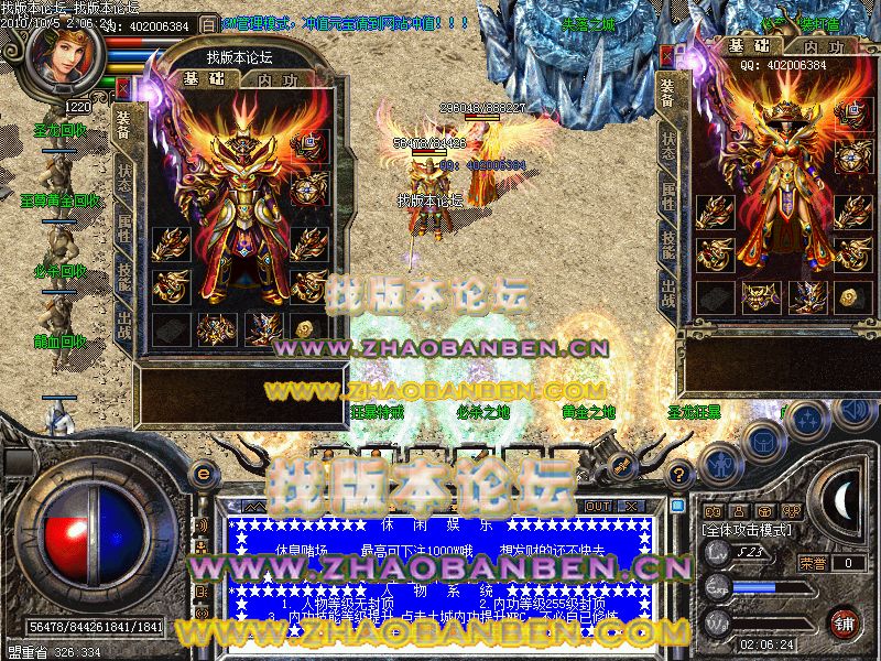 本服为无GM管理模式,冲值元宝请到网站冲值!!!
