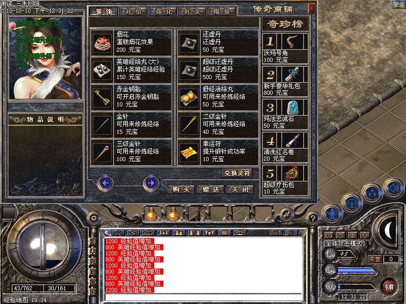 〖版本大体方向〗:1-60级可以直接在新人练级场地完成.达到60级后建议大家去盟重省.点指挥官进入元宝之地打元宝进行闭关修炼.升几级以后在去卧龙挖珠升级!